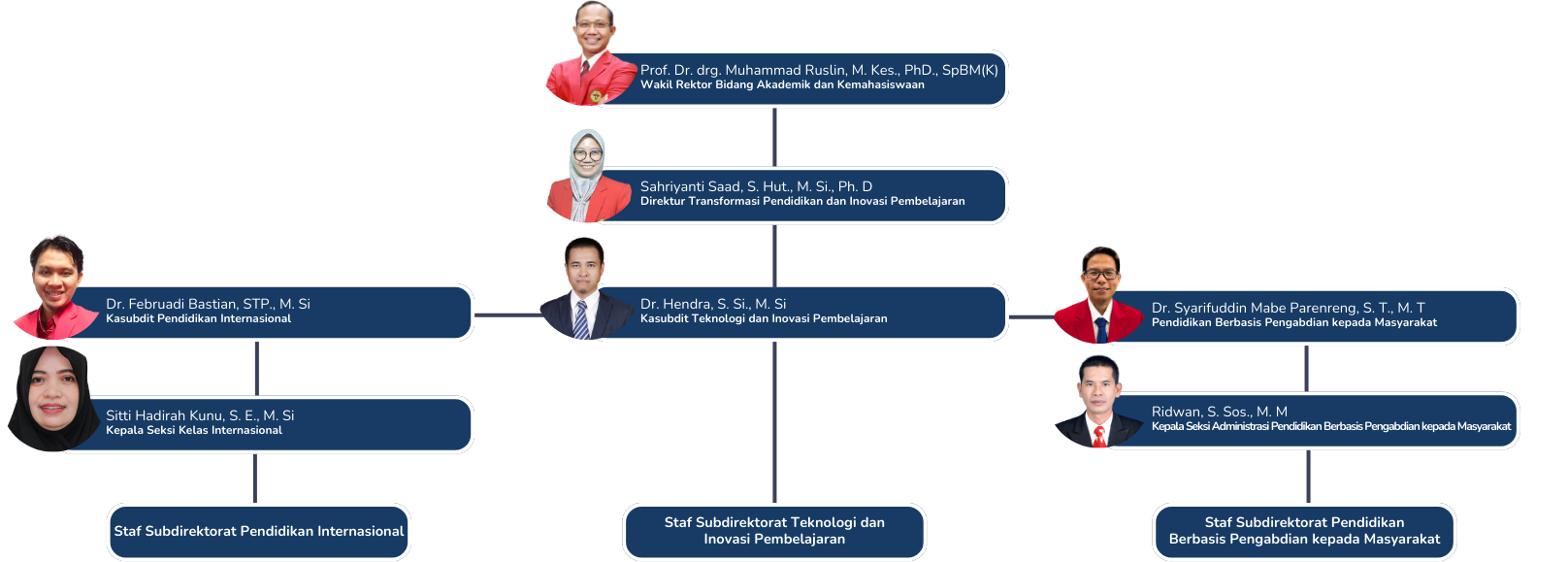 Direktorat Transformasi Pendidikan serta Inovasi Pembelajaran merupakan salah satu unit direktorat di Universitas Hasanuddin yang bertanggung jawab kepada Wakil Rektor Bidang Akademik dan Kemahasiswaan.